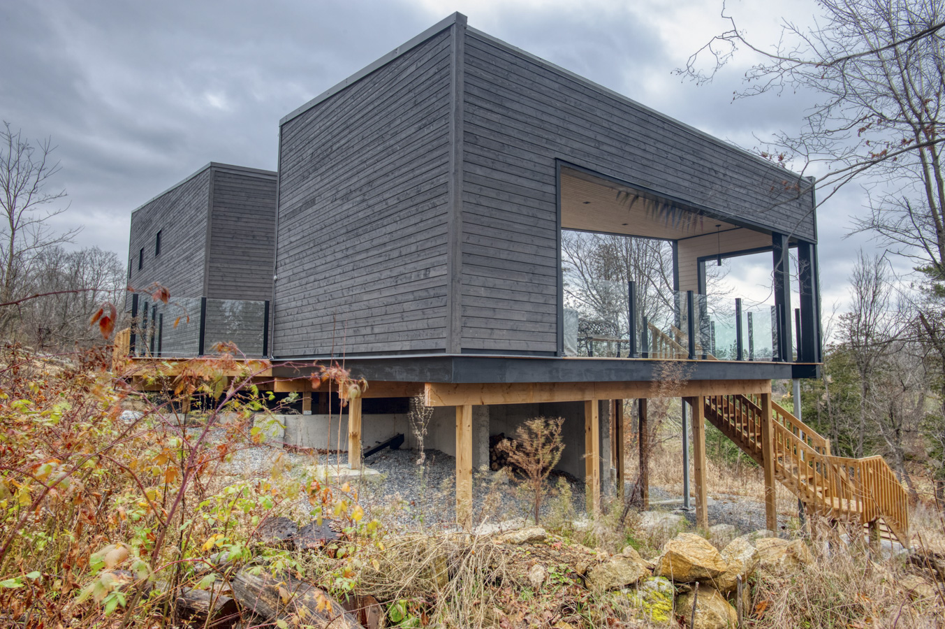 Carved into the rock above Dog Lake, Ontario, this high-performance home blends with its rugged environment, reflects its owner’s playful sense of humour, and is one of the most airtight homes we’ve ever built.